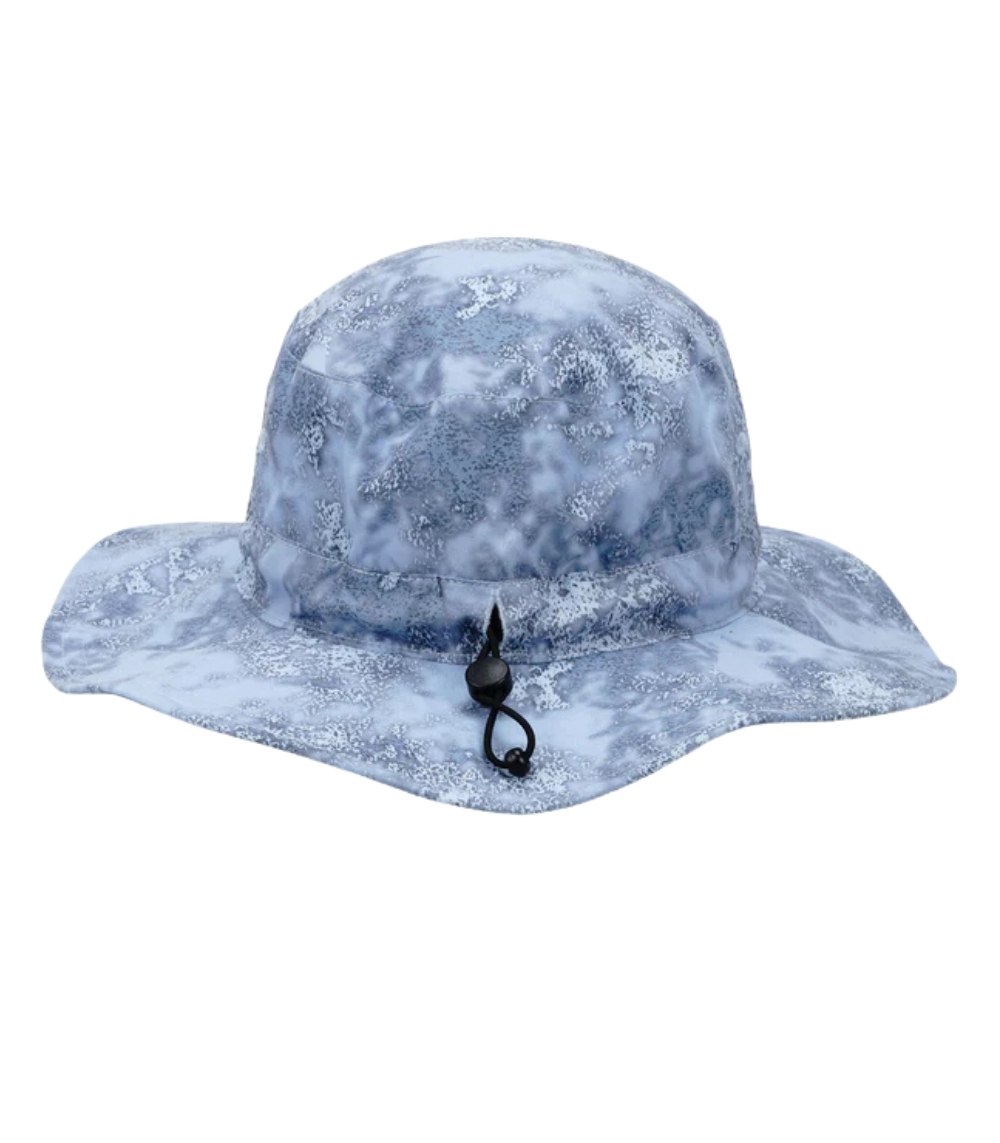 The AFTCO Cast Printed Boonie Hat provides full sun protection and comfort in a lightweight printed microfiber design. Featuring an adjustable chin cord, locking cinch, and embroidered logo, it’s perfect for fishing, boating, and outdoor adventures. Available in Airy Blue Acid Camo, one size fits most.