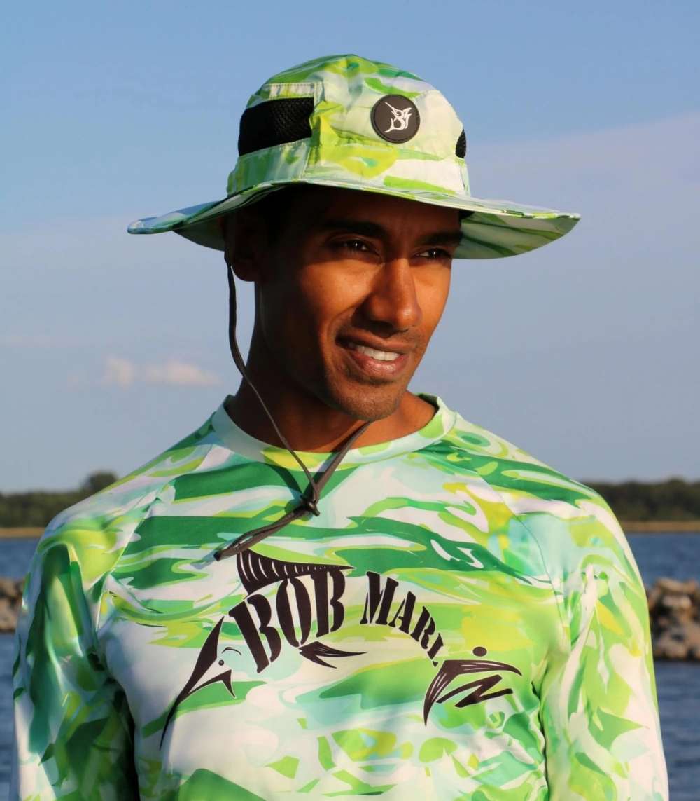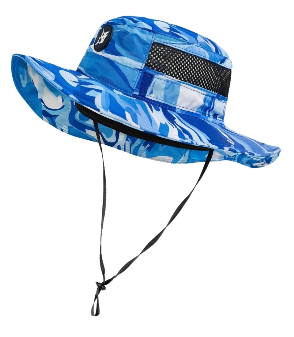 The Bob Marlin Bucket Hat blends comfort, style, and protection with its water-resistant polyester, UPF 50+ sun shield, and breathable air panels. Featuring a moisture-wicking headband and adjustable strap, it’s ideal for fishing, boating, and outdoor adventures. Available in the Blue Storm theme, one size fits most.