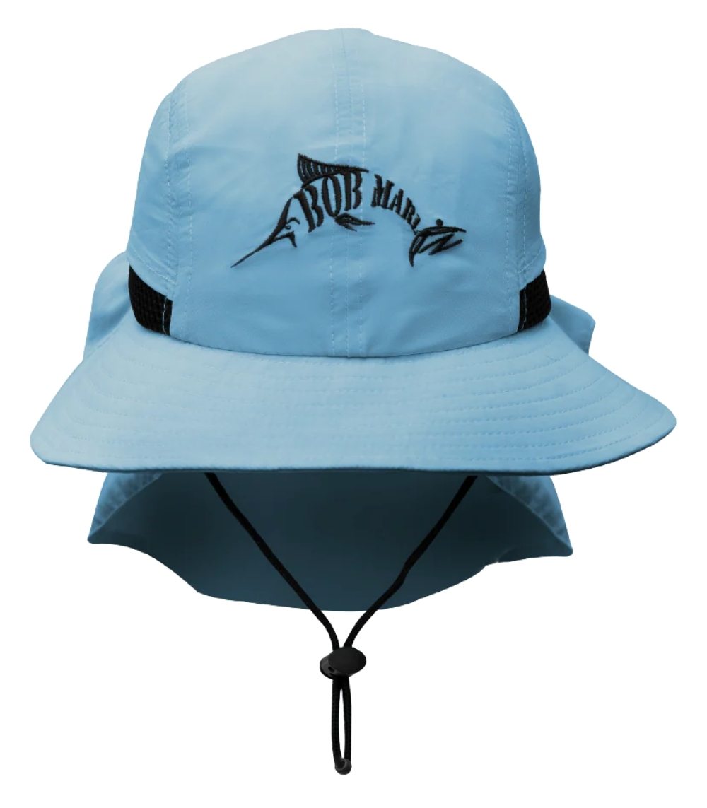 For enhanced coverage, the hat features a built-in neck flap that safeguards your neck and ears from the elements. The embroidered Bob Marlin logo adds a touch of authenticity, and the adjustable strap ensures a secure, personalized fit for all head sizes.