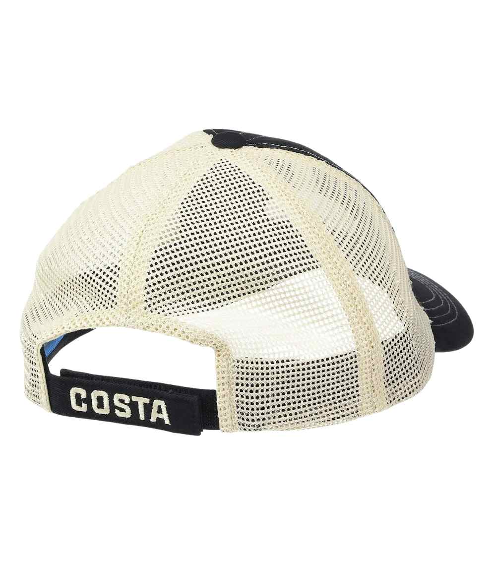 The front showcases a bold embroidered Costa logo accented with contrast stitching, adding a sporty yet refined touch. The adjustable cloth hook-and-eye strap closure at the back guarantees a comfortable and secure fit for most head sizes.