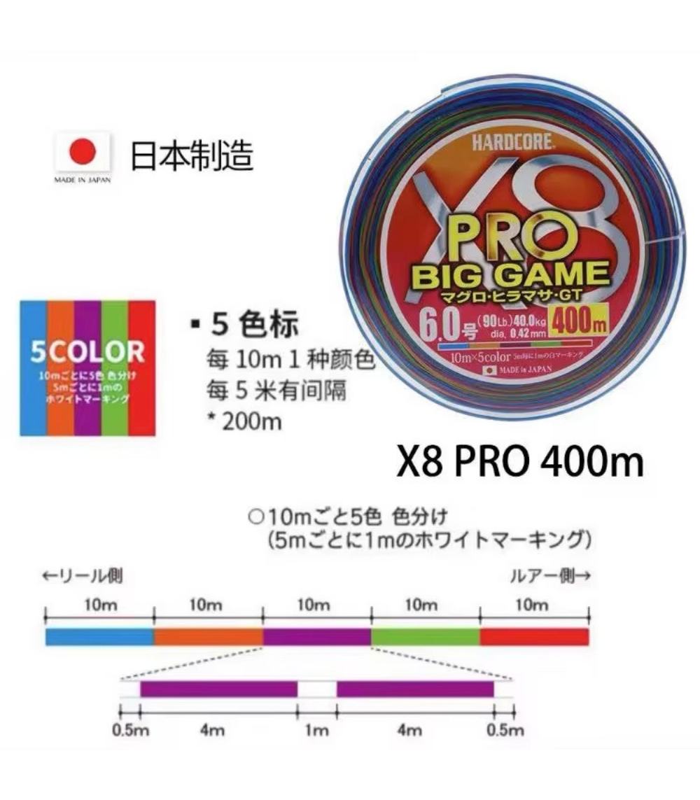 The multicolor 5-color marking system changes every 10m with additional 1m and 5m markers, allowing anglers to measure depth and distance with precision—perfect for jigging, trolling, and deep-sea fishing. Supplied in a 400m spool for big game applications.