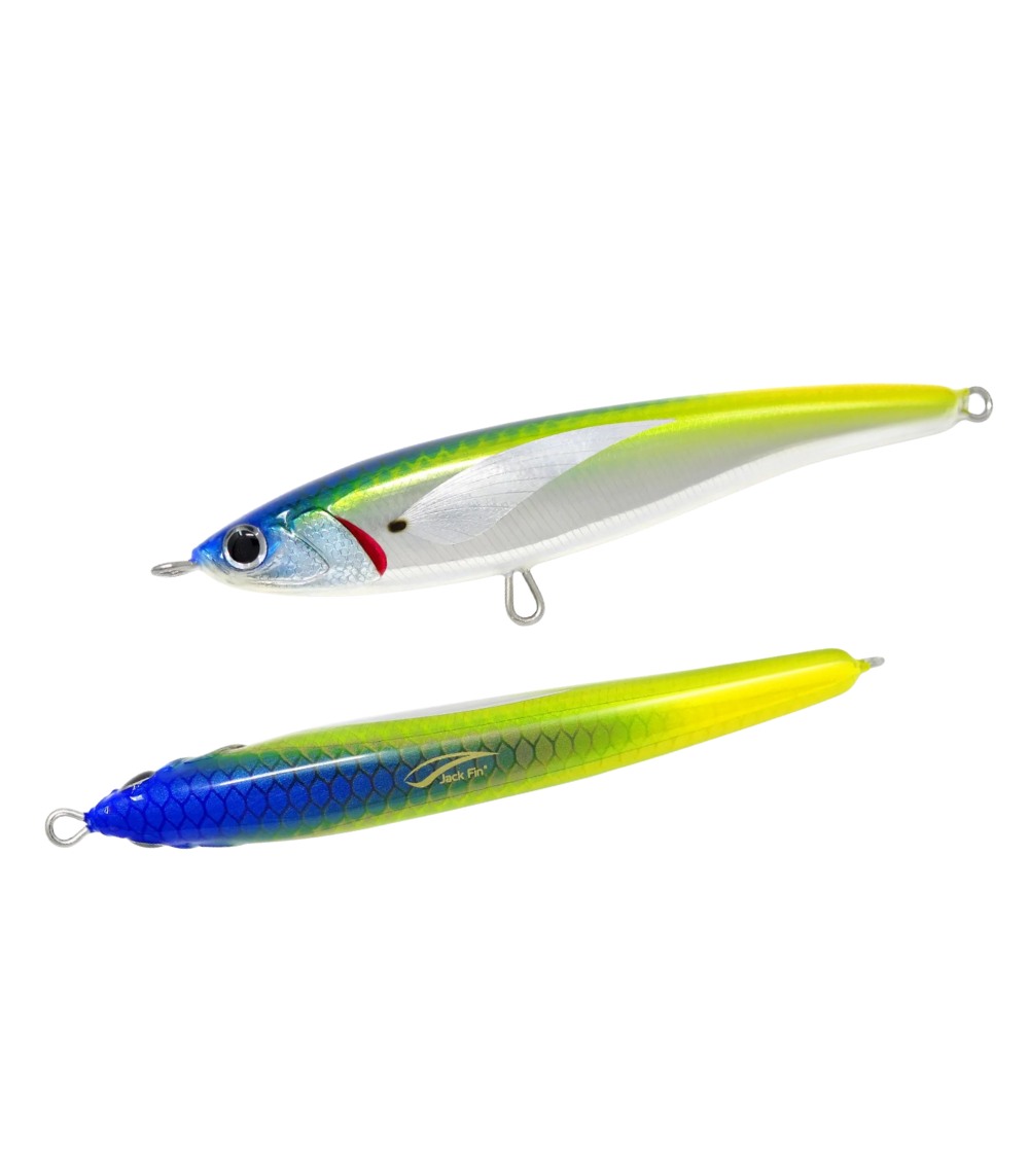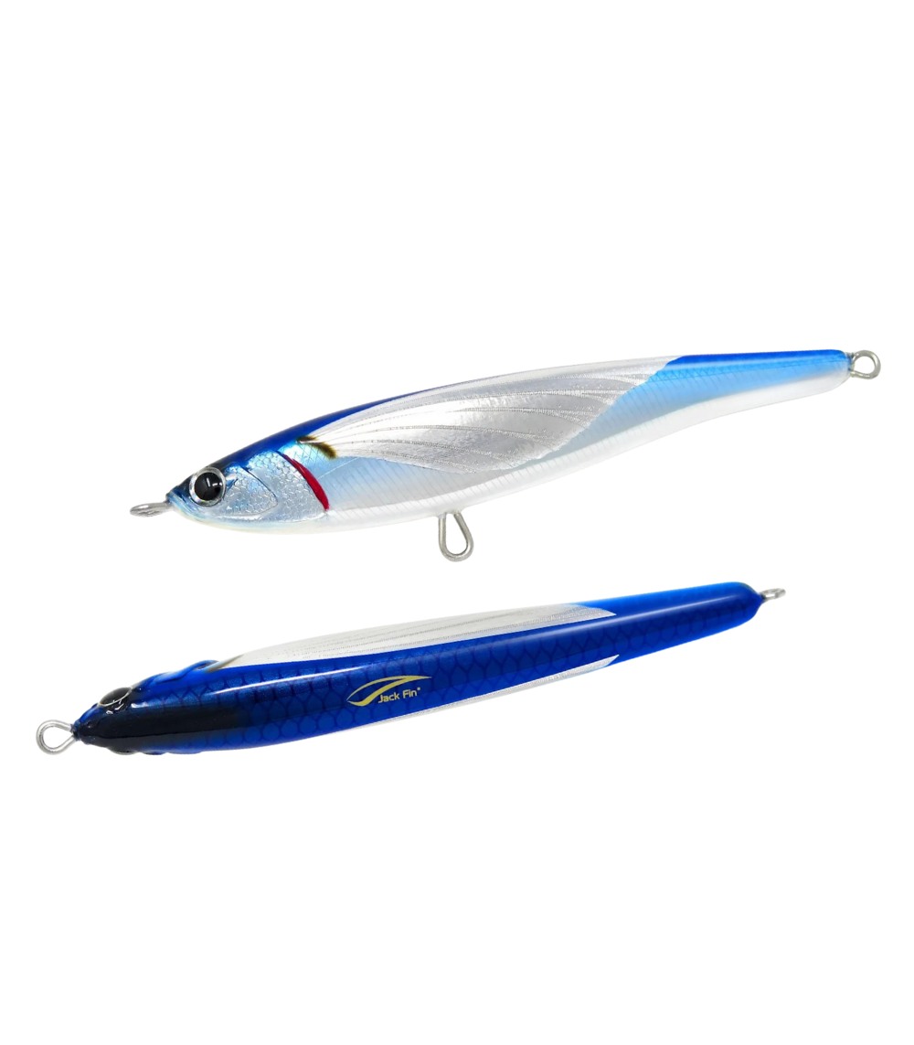 The Jack Fin Pelagus 165-S is a specialized sinking stickbait engineered specifically for Bluefin Tuna fishing. It features a distinctive “wobbling” action during the sinking phase that attracts tuna from long distances, making it highly effective for both feeding frenzies and targeting apathetic fish hunting small forage.