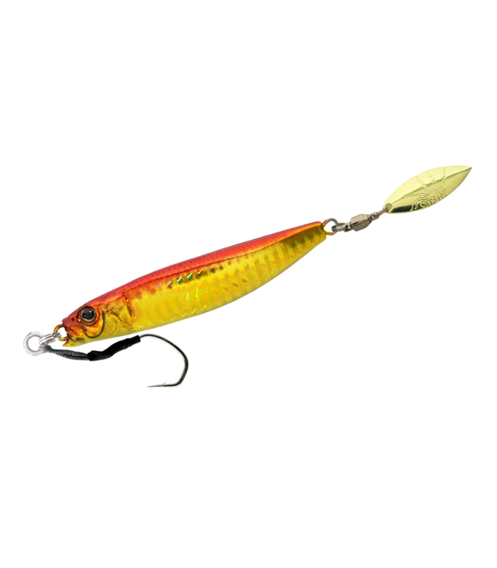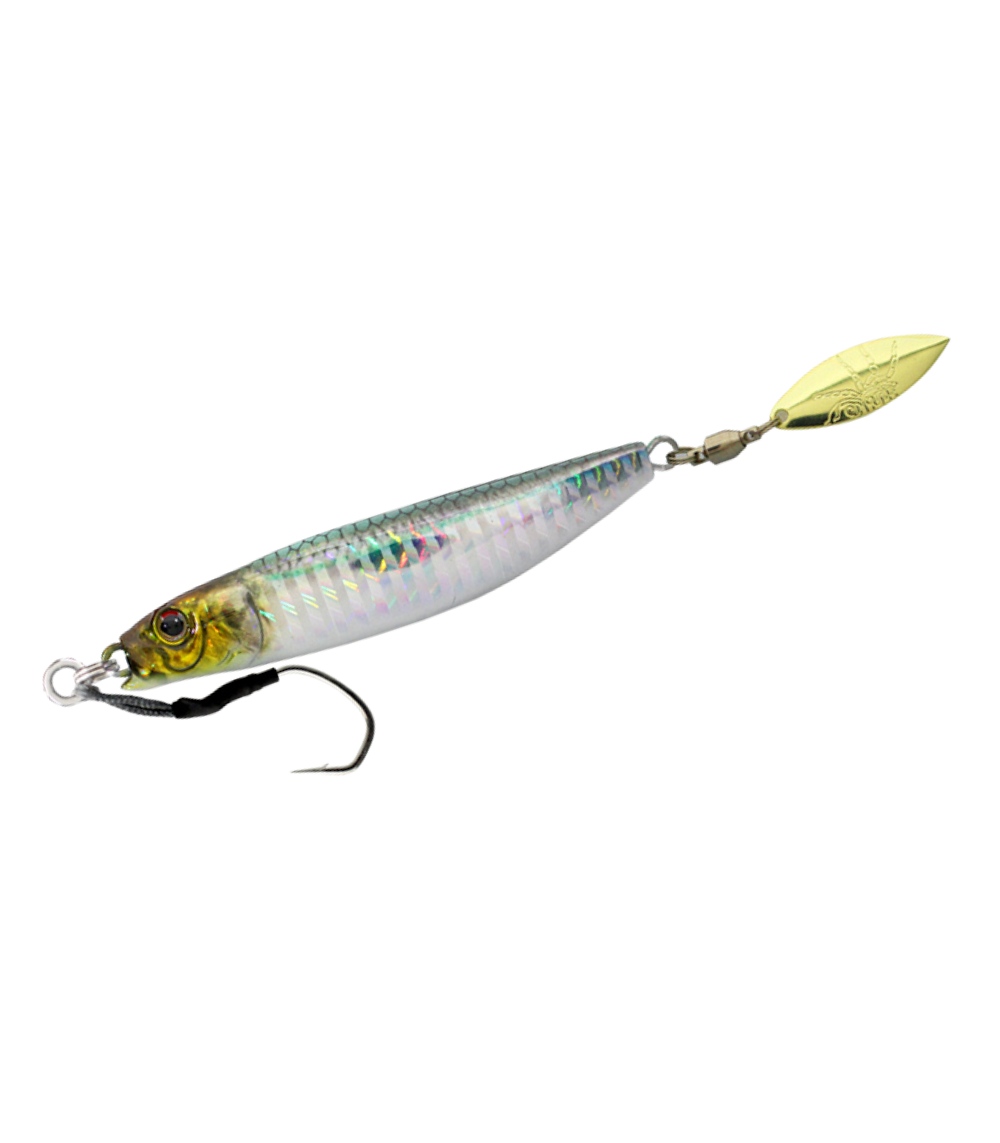 The 60g model (85mm) is ideal for nearshore light jigging, while the 80g model (95mm) excels in full-scale shore jigging and deeper water conditions. Both come ready to use with high-quality hooks, and the 80g version includes an original gold blade that adds flash and bait-like vibration to trigger more strikes.