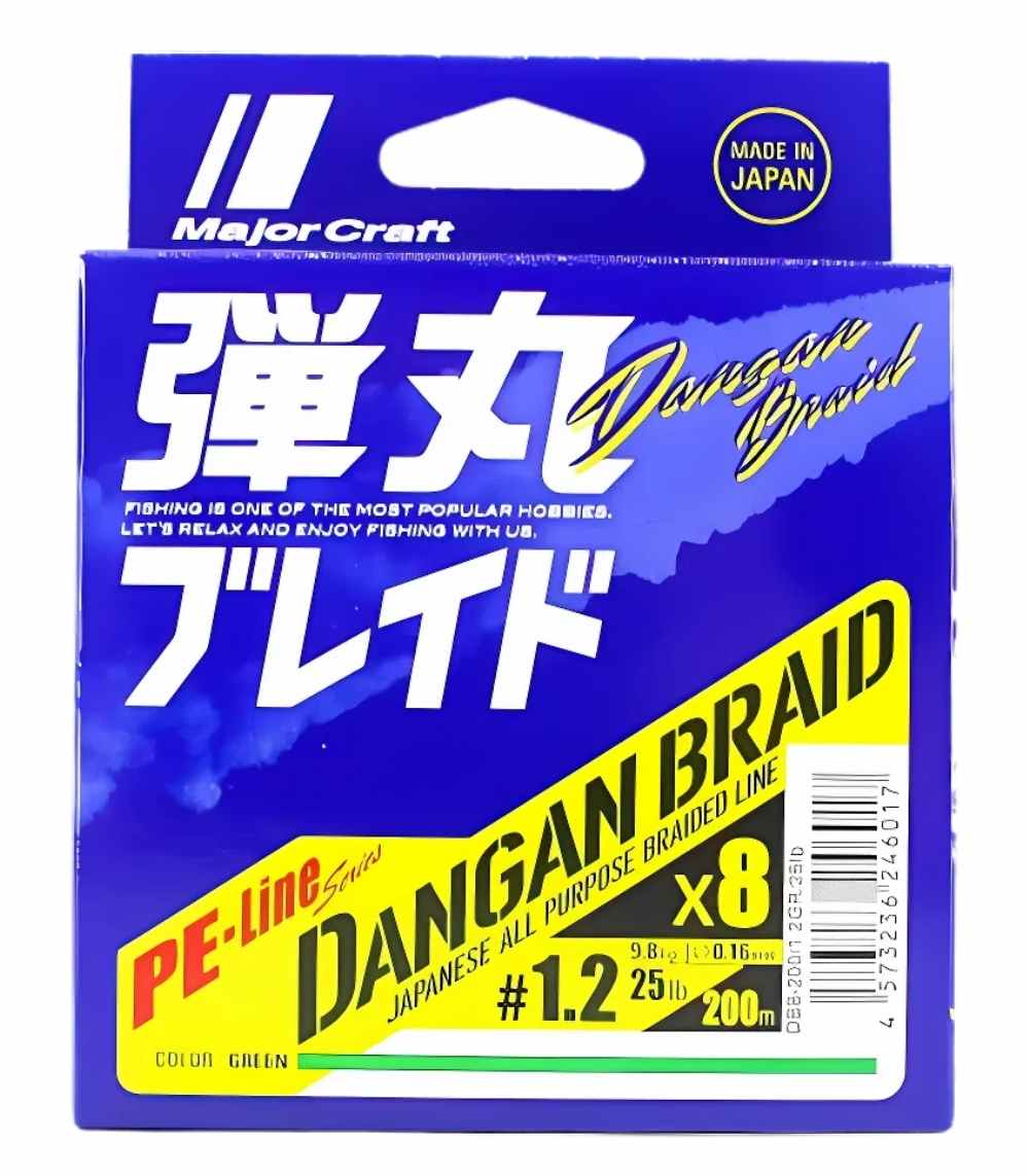 The Major Craft Dangan X8 Braided Fishing Line 200m is a premium Japanese 8-strand braided PE line designed for smooth casting, high strength, and excellent abrasion resistance. Its natural green color provides a stealthy presentation in both fresh and saltwater. Available in PE 0.8–1.2 (15–25lb), it is ideal for spinning, jigging, and versatile lure fishing.
