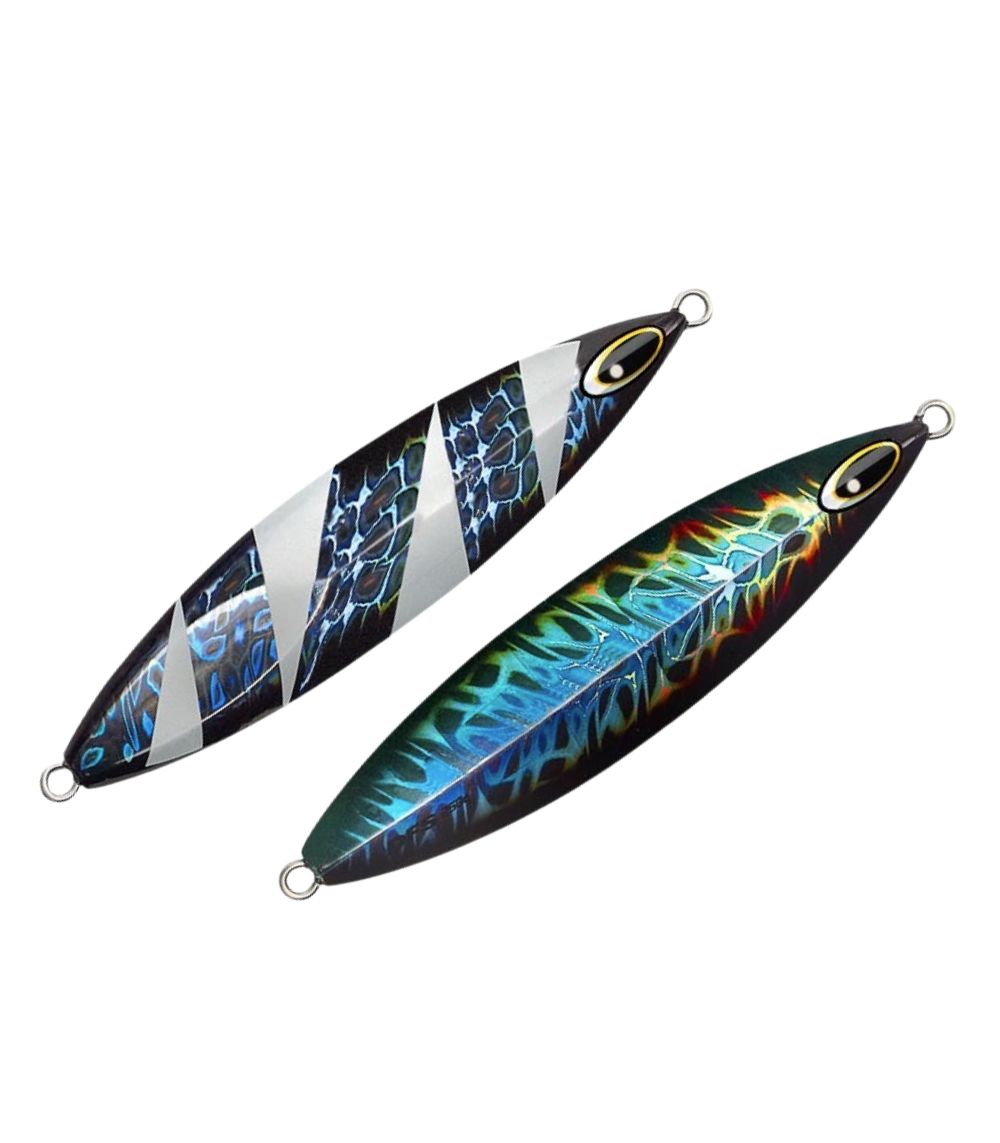 The Maxel Dragonfly Series DFS250g Slow Jig is a new-generation slow jig built with a center-balanced body and multiple diamond-surface design to create a natural Slow Slide Drifting & Flutter action on the fall. Unlike conventional speed jigs, it’s designed to glide, drift, and flutter—keeping the lure in the strike zone longer and provoking bites from deep-water predators. Constructed from a special hard lead alloy for durability and compact sink performance, it features a high-adhesion gold stamping foil finish for intense flash and a thick, ultra-glistening profile. Large luminous eyes improve visibility in deep water and low-light conditions.