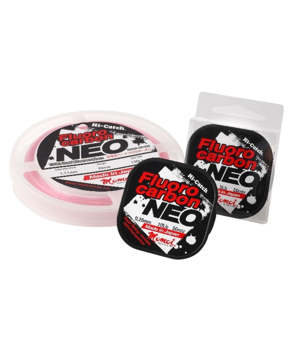 | Momoi | Hi-Catch Fluorocarbon NEO | MHCFN | 100% Fluorocarbon (Polyvinylidene Fluoride) | Fluorocarbon Fishing Leader | 25 m / 50 m | Pink / Clear |