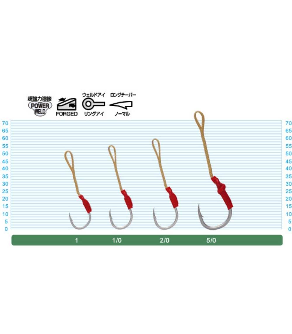 Suitable for pairing with 80–140 g metal jigs, this hook delivers dependable performance in nearshore and offshore jigging applications, making it ideal for amberjack, tuna, snapper, yellowtail, and a wide range of predatory fish.