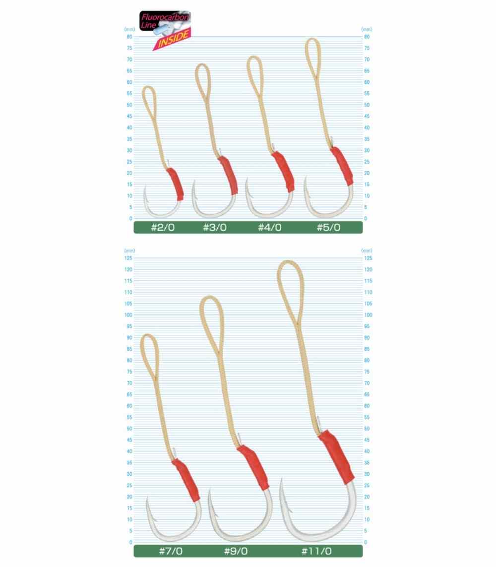 Each hook is rigged with a fluorocarbon-core assist cord, designed to reduce tangles during the fall and provide stable hook presentation. The SF-40 series is engineered for strength, reliability, and smooth action, making it ideal for shore jigging, boat jigging, and offshore vertical jigging.