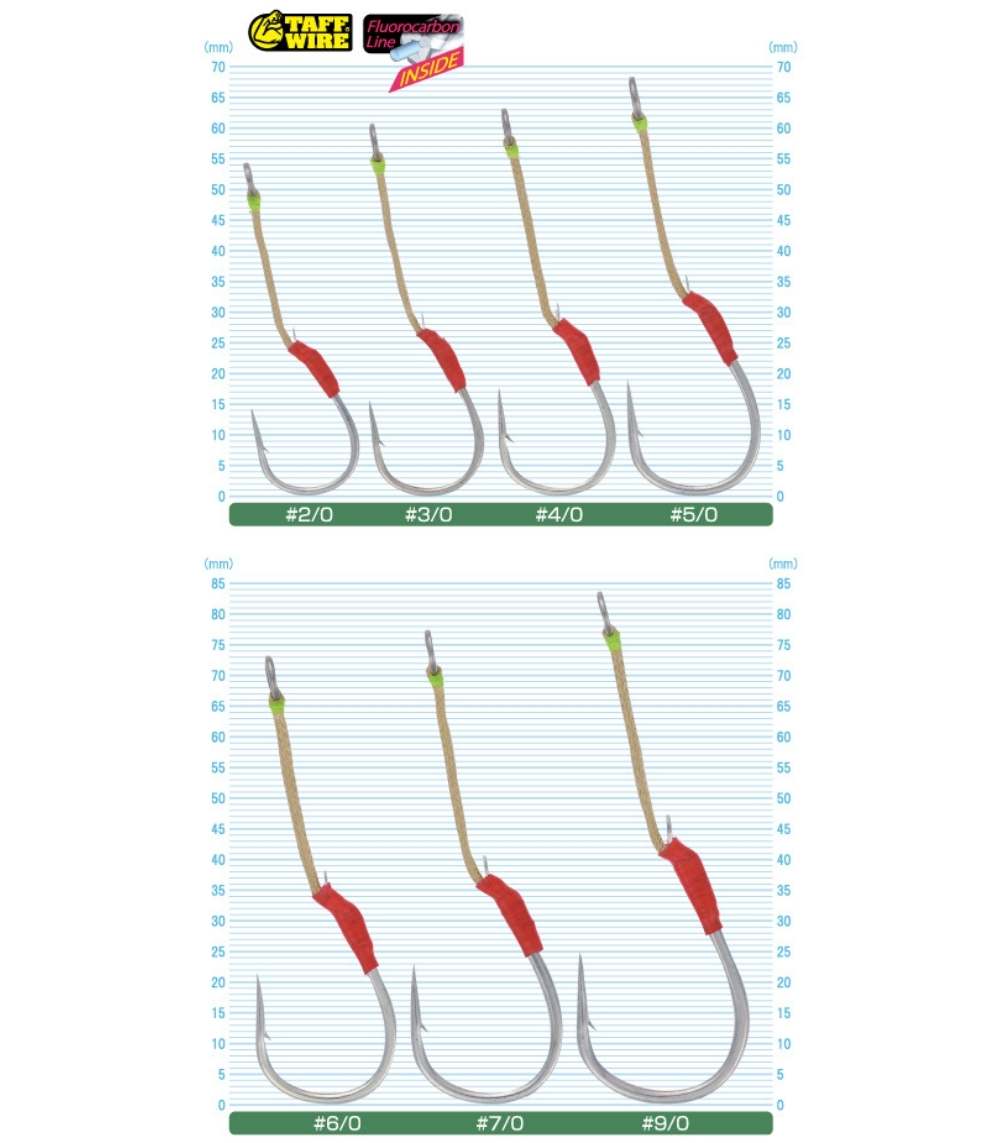 | Brand | Product Name | Size | Hook Strength (lb / kg) | Assist Line Strength | Ring Inner Diameter | Coating | Wire Type |