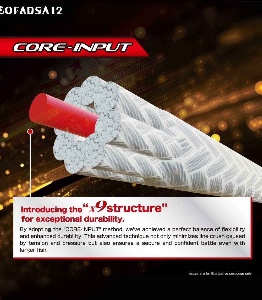 9-Strand Construction (x9): Unique structure with 8 strands wrapped around a core for unmatched durability, balanced flexibility, and reinforced strength.