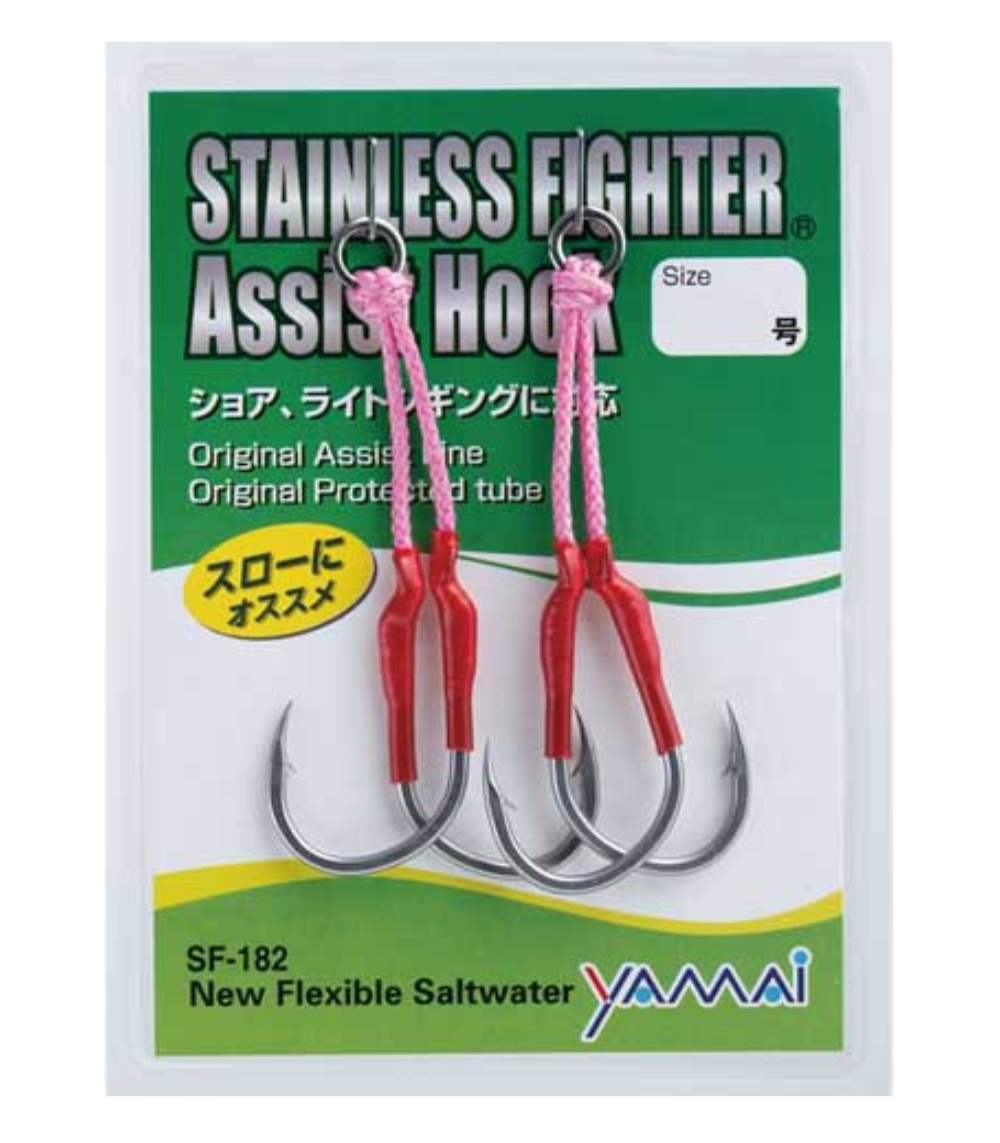 The Yamai Suteki SF-182 Stainless Fighter Double Assist Hook is an elite, double assist hook featuring premium Stainless Steel construction for extreme corrosion resistance. It is masterfully engineered for light and slow jigging, utilizing an original protected tube and flexible assist line to ensure smooth, secure hook-ups. This is the definitive choice for New Flexible Saltwater applications.