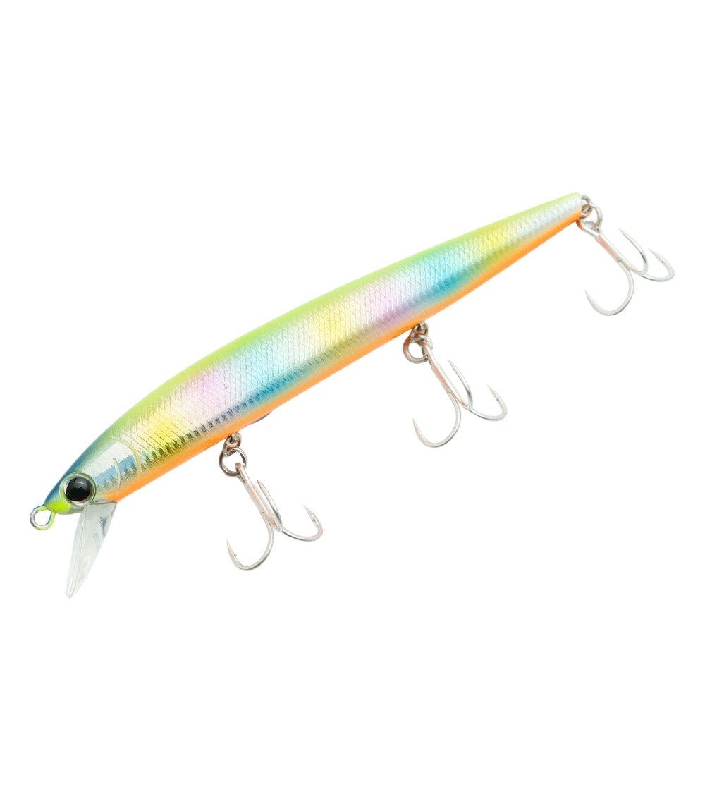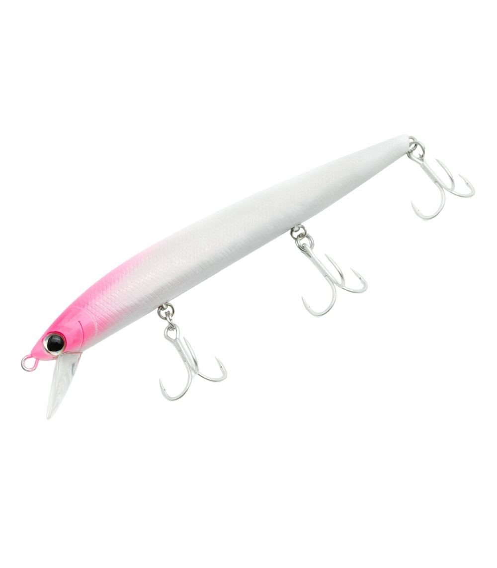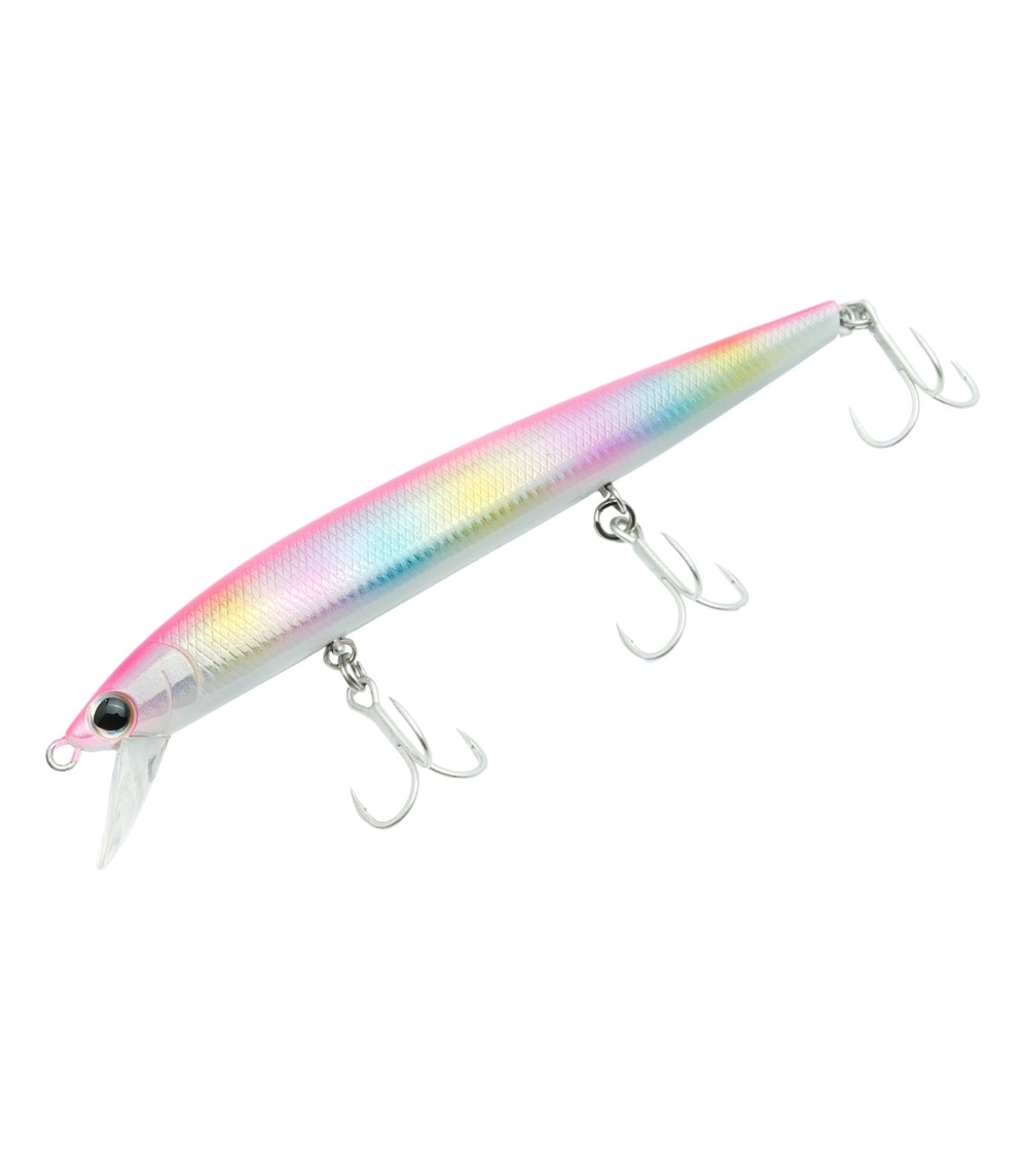 Its slim, streamlined body stabilizes flight posture and maximizes casting distance, ensuring accurate and powerful throws even in windy surf conditions. Upon hitting the water, the lure exhibits a horizontal rolling fall with a natural flash that imitates a wounded baitfish.